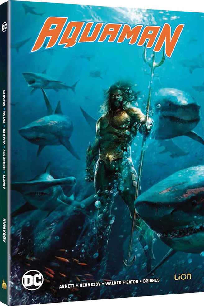 Arthur e' figlio di Tom guardiano di un faro e Atlanna nientemeno che regina di Atlantide. L'unione dei due e' pero' clandestina tanto che per salvare il figlio Atlanna accettera' di farsi giudicare nella citta' subacquea che la giustiziera' consegnandola al piu' feroce dei popoli sottomarini. Arthur cresce imparando in segreto da Vulko consigliere del re e di suo figlio Orm i segreti di Atlantide ma da adulto preferisce stare lontano dalla citta' sommersa e si limita a compiere gesta eroiche in mare come salvare un sottomarino da un team di pirati. Qui finisce per lasciare morire uno di loro e il figlio giura vendetta tanto da allearsi con il fratellastro di Arthur Orm. Nel mentre la figlia di Re Nereus Mera cerca di convincere Arthur ad abbracciare il suo retaggio di regale atlantideo per scongiurare una guerra ma per riuscire in questo piano sara' necessario ritrovare il perduto tridente di Atlan.Ubicazione Negozio: